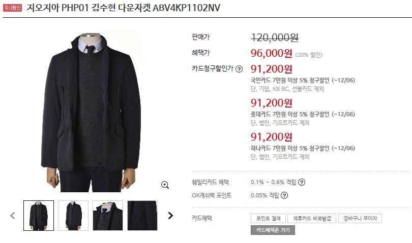 [홈플러스몰] 지오지아 오리털패딩(96000/무료)