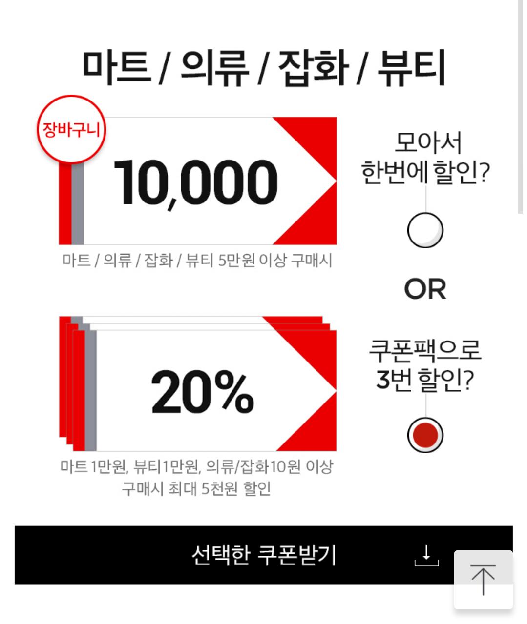 쿠폰받기 누르시면 선택이있는데 20프로 할인쿠폰
