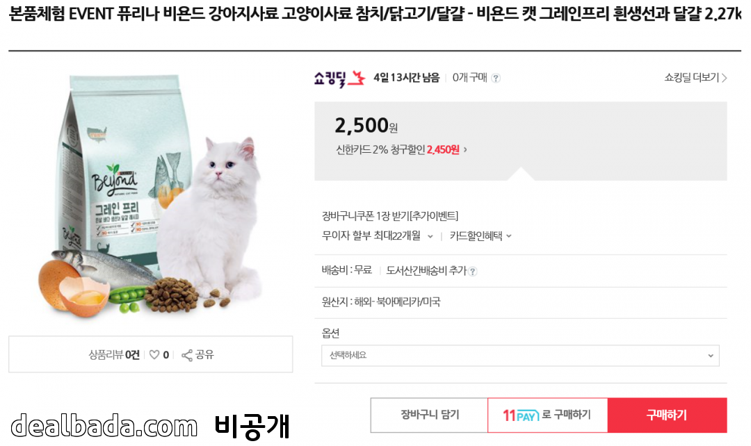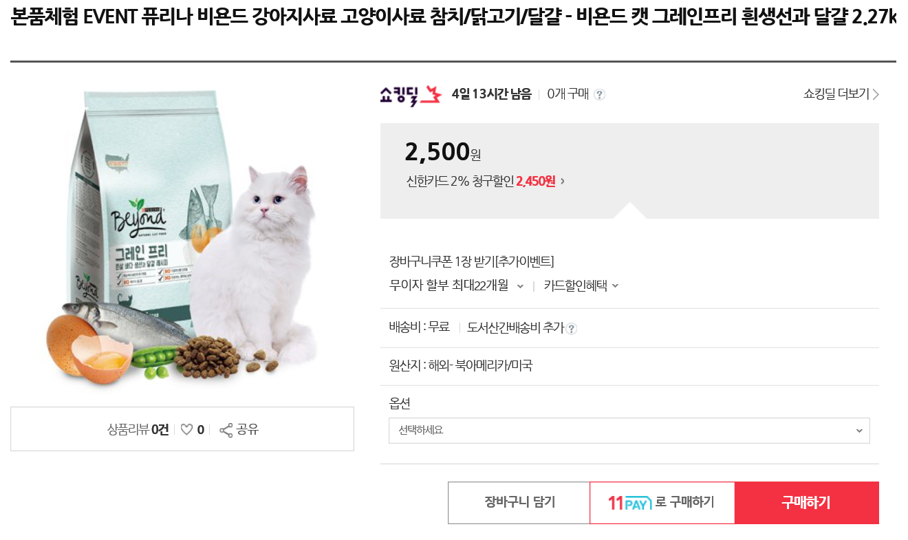 [11번가] 퓨리나 비욘드 고양이 or 강아지 사료 본품 (2,500원/무료) > 국내핫딜