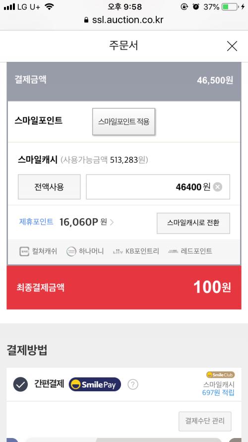 - 스마일페이 결제시 697원 적립 (8%할인 641원)