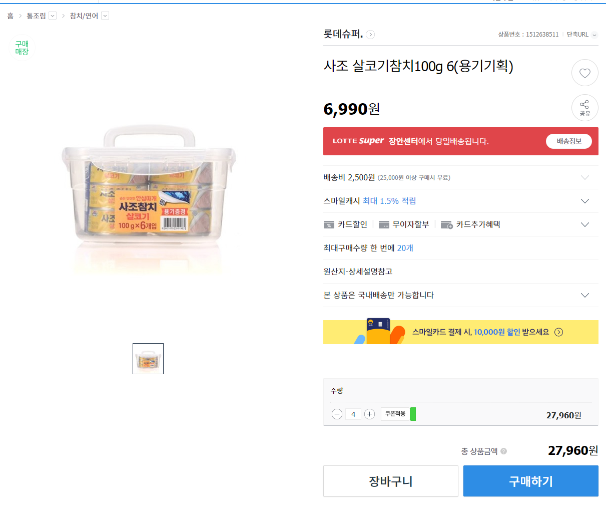 100g 24캔에 1.5L 밀폐용기 4개까지 총 17,960원입니다.