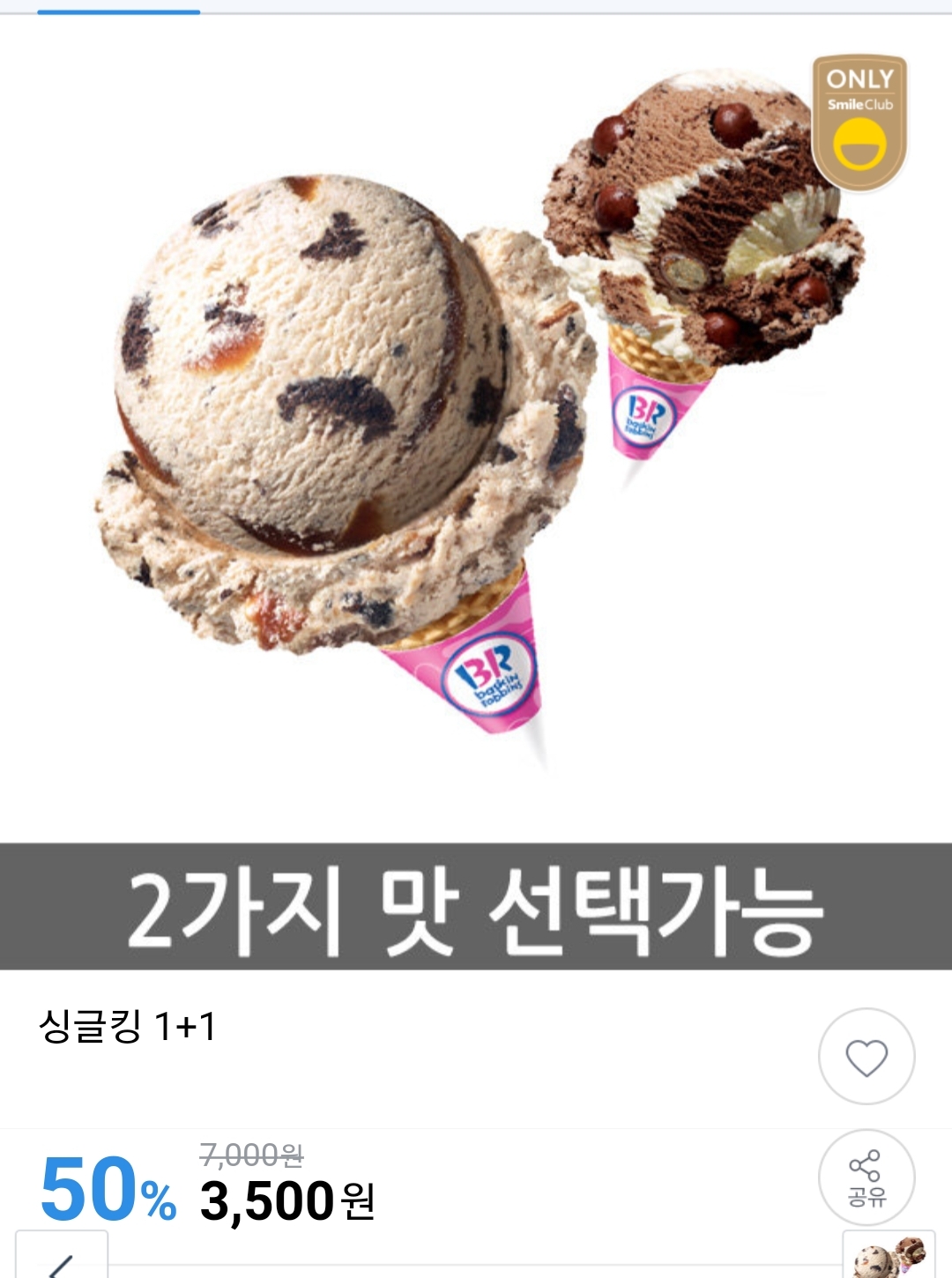 [옥션] (빅스마일데이) (배스킨라빈스) 싱글킹 1+1 (3,500원/모바일전송)