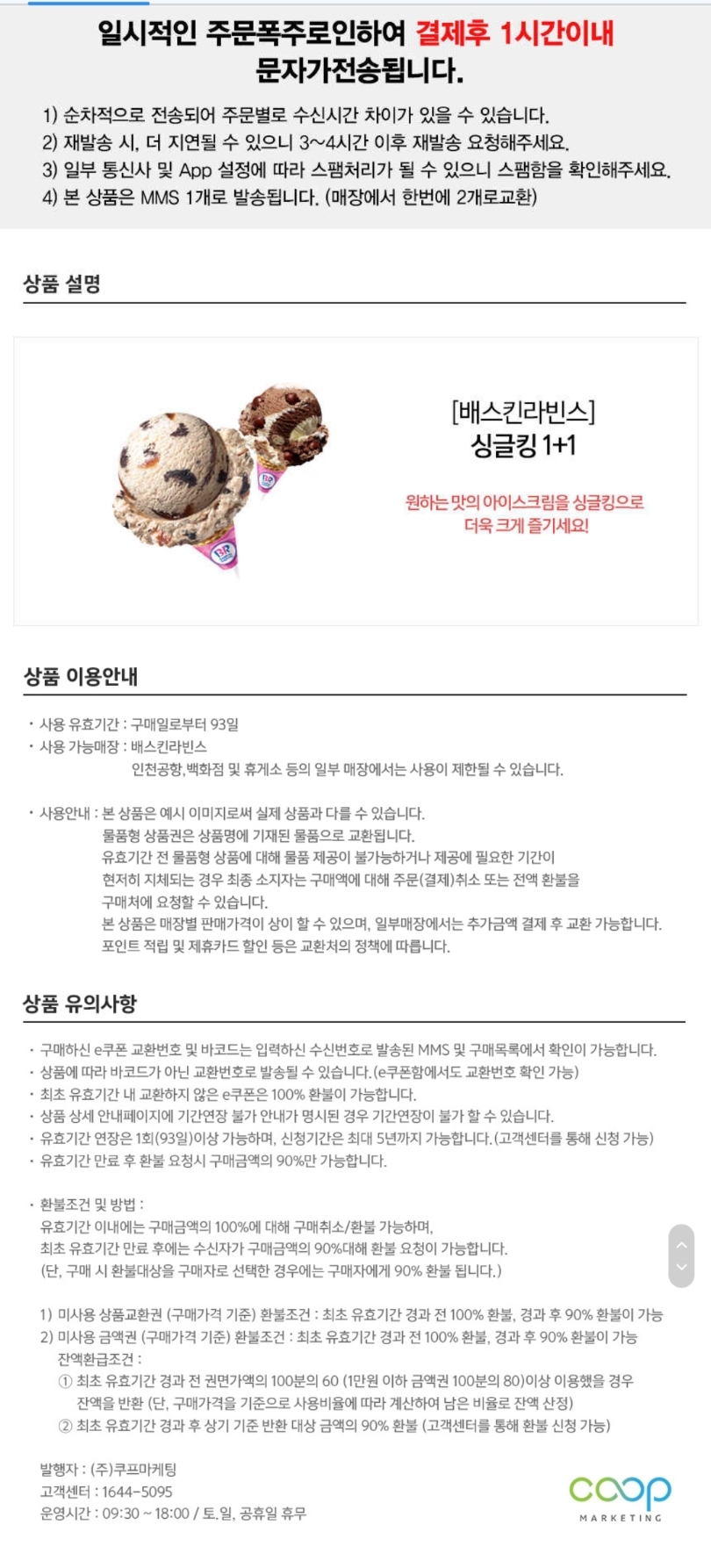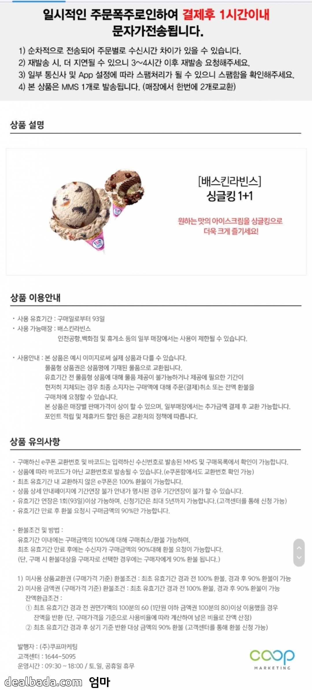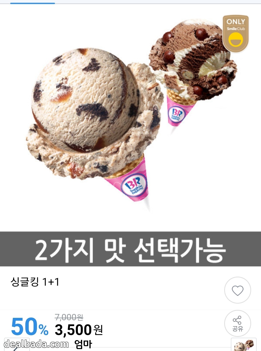 [옥션] (빅스마일데이) (배스킨라빈스) 싱글킹 1+1 (3,500원/모바일전송) > 국내핫딜