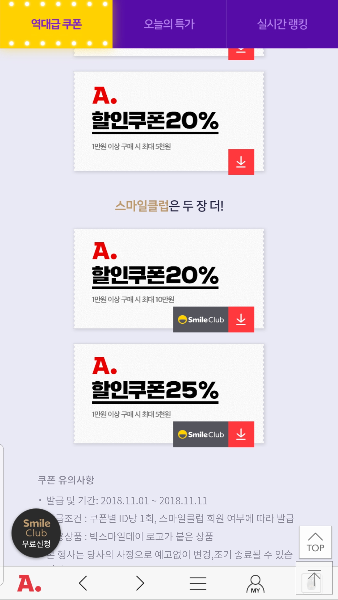 옥션 or 지마켓 쓰면서 스마일클럽 가입 안하면... 엄청난 손해를 보고 계시는겁니다... | ||