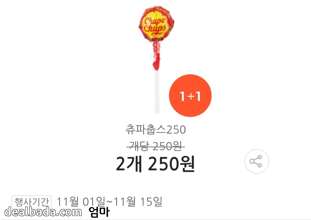 방금 GS에 가보니 츄파춥스 1+1 행사한다는 문구가 있더군요~