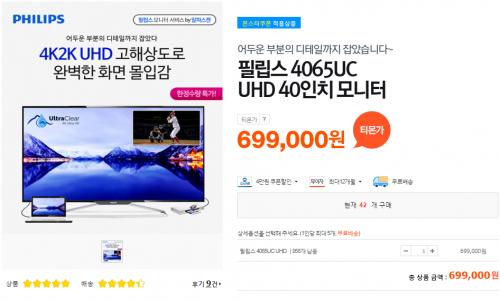 [티몬] 필립스 4065UC UHD 40인치 모니터 (699,000원/무료) > 국내핫딜