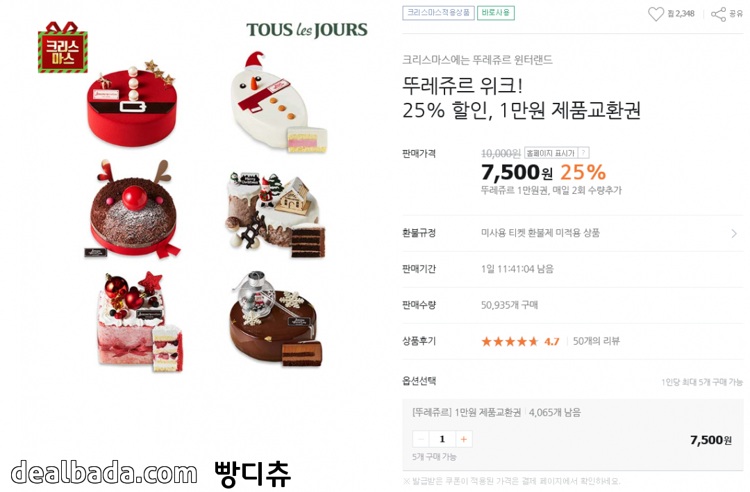 [티몬]뚜레쥬르 25% 할인, 1만원 제품교환권(7500원/무료) > 국내핫딜