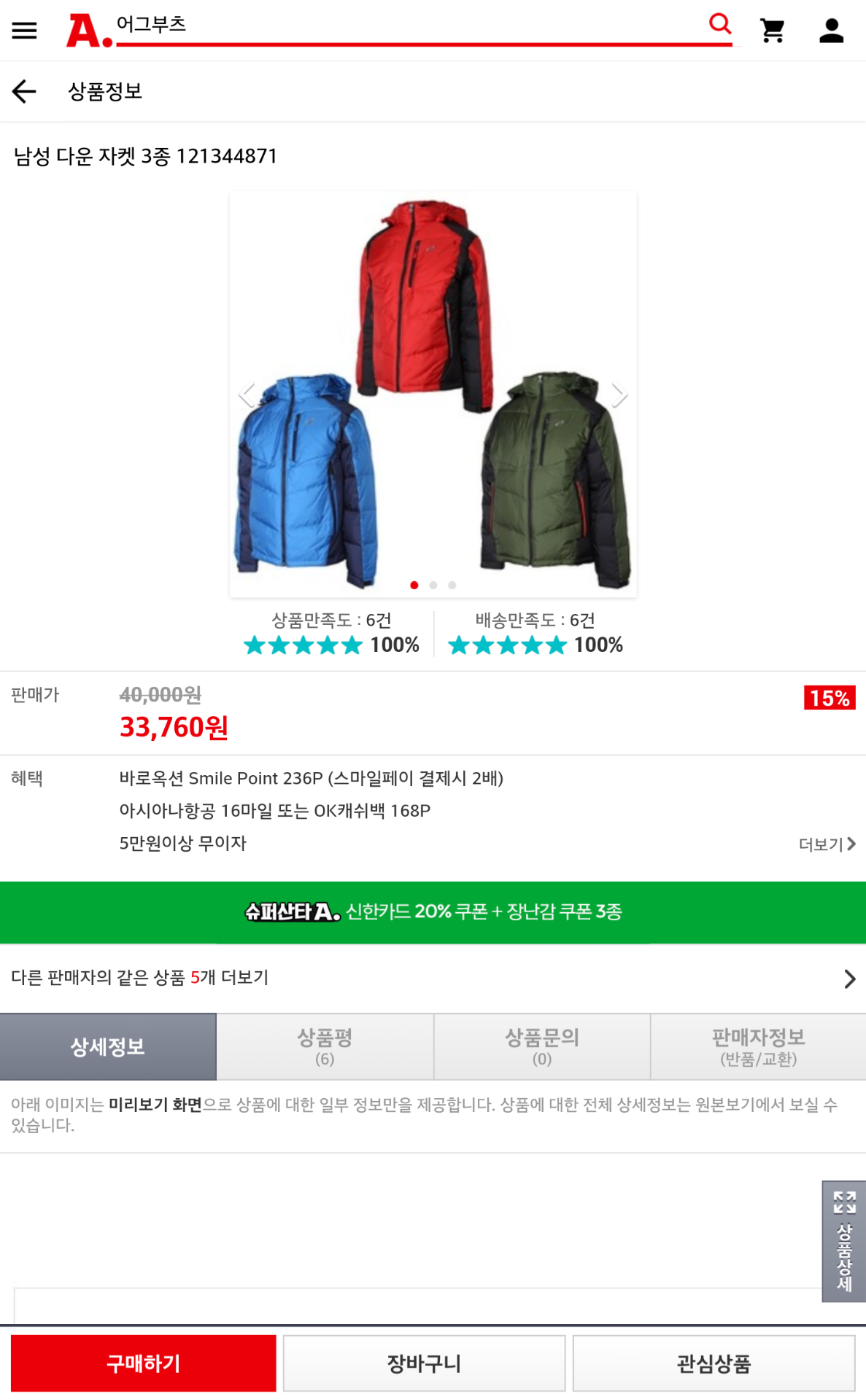 [옥션] 아식스 덕다운 레드/블루 택1 (33,760/무료)