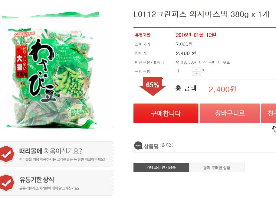 [떠리몰] 그린피스 와사비스낵 380g 유통기한임박 (2,400원/2,500원) > 국내핫딜