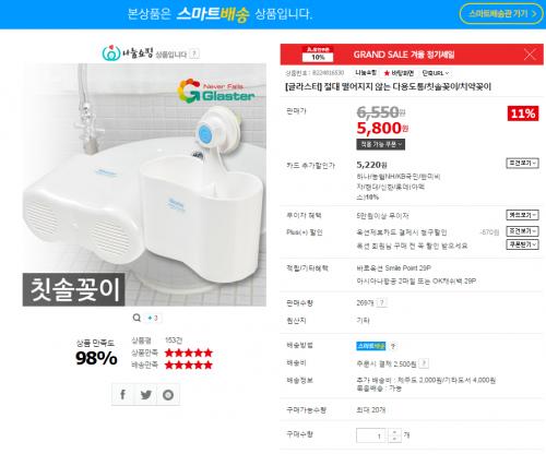 [옥션] 글라스터 절대 떨어지지 않는 다용도통/칫솔꽂이/치약꽂이 (5,800원/2,500원) > 국내핫딜