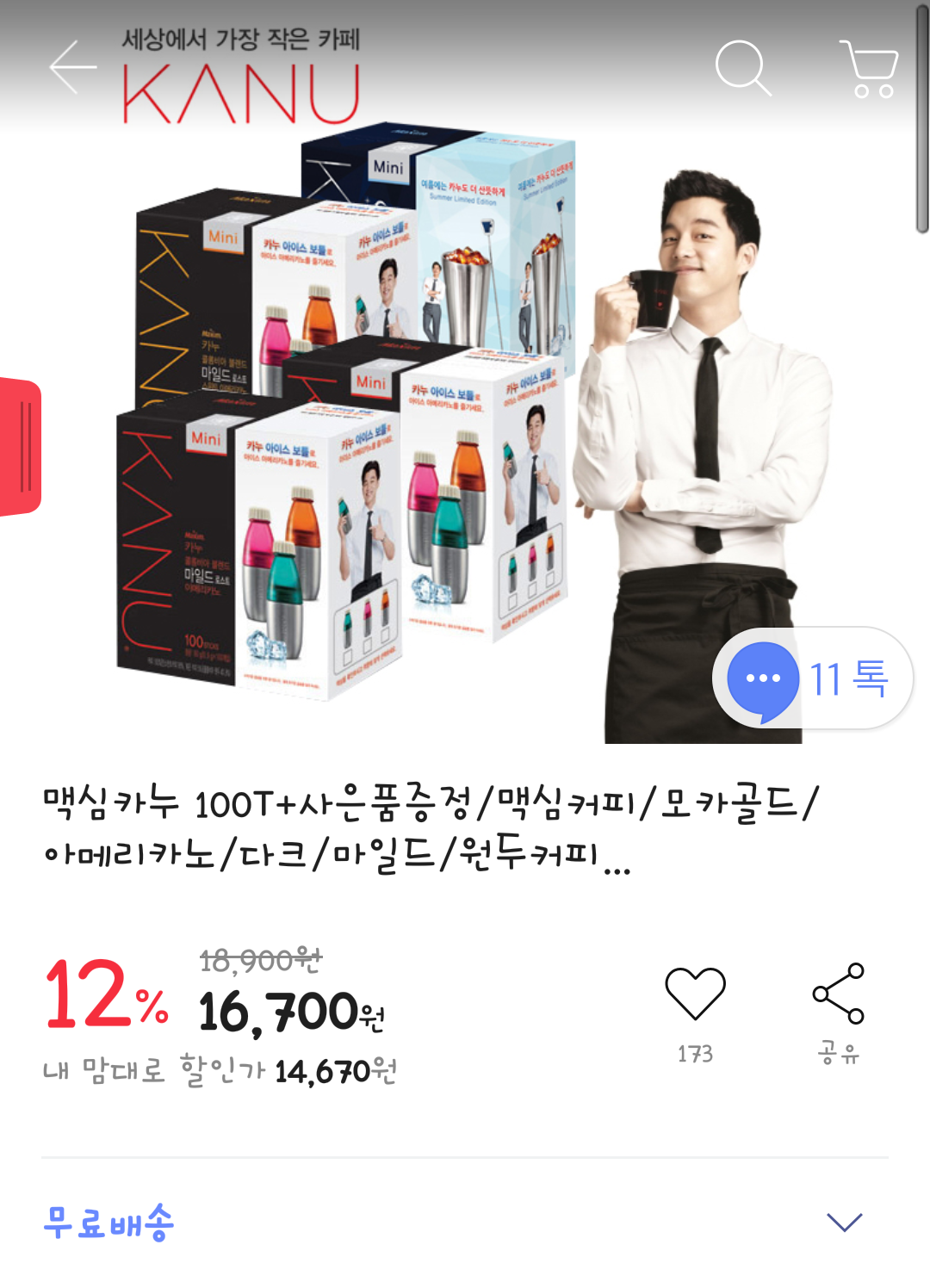 할인 크게할 때 사은품으로 카누 20개 주는 딜로 구매하시는게 나으실 듯 하네요~~