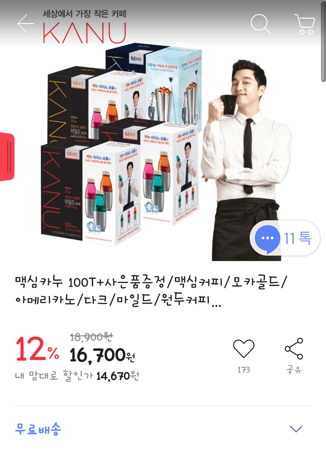 카누100t + 랜덤사은품은 14670원까지 나오네요