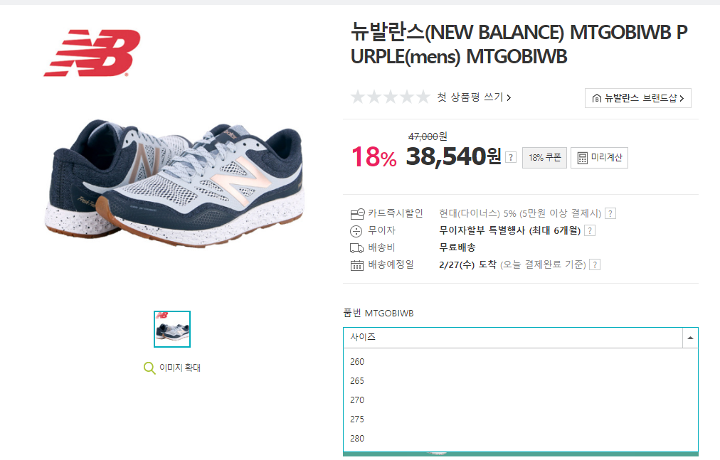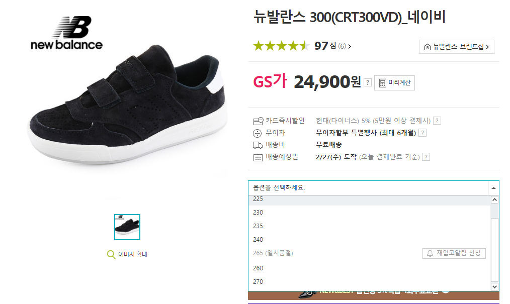 네이버 기준 최저가는 링크의 지옥인데 사이즈가 275, 280밖에 없습니다.