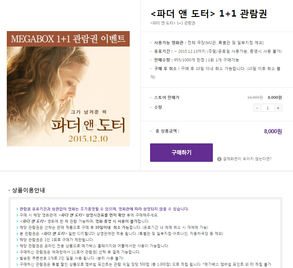 [메가박스,CGV] 파더 앤 도터 1+1 (8,000/0) > 국내핫딜