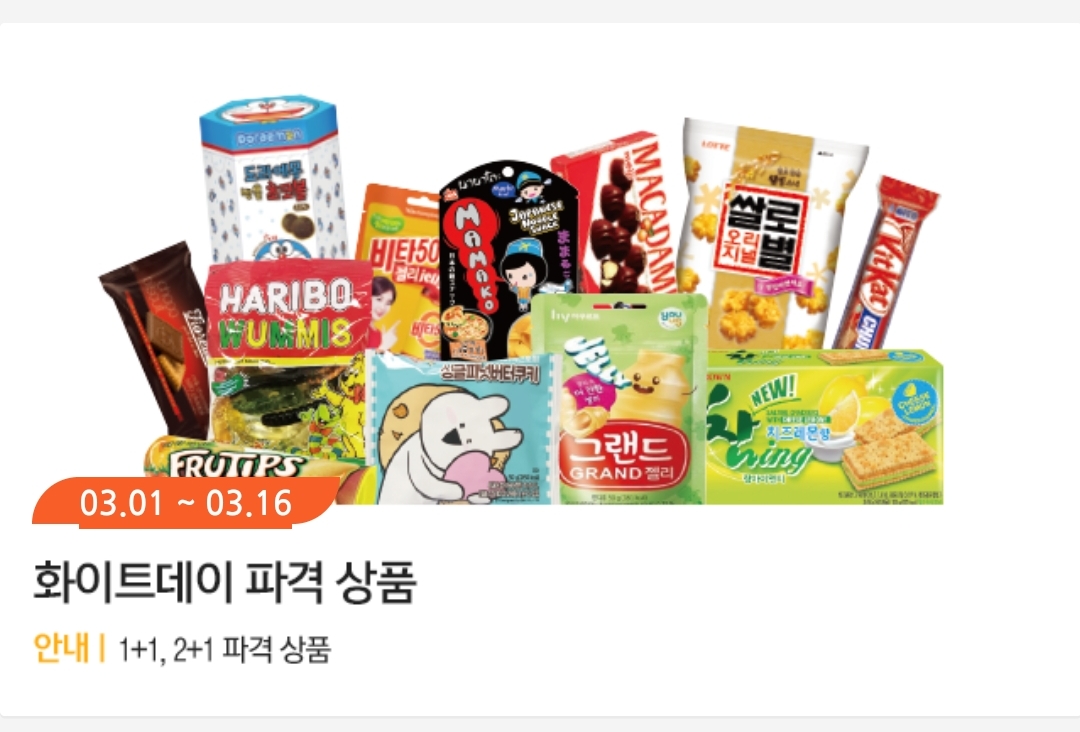 [오프라인] gs25 화이트데이 1+1 (300~) > 국내핫딜