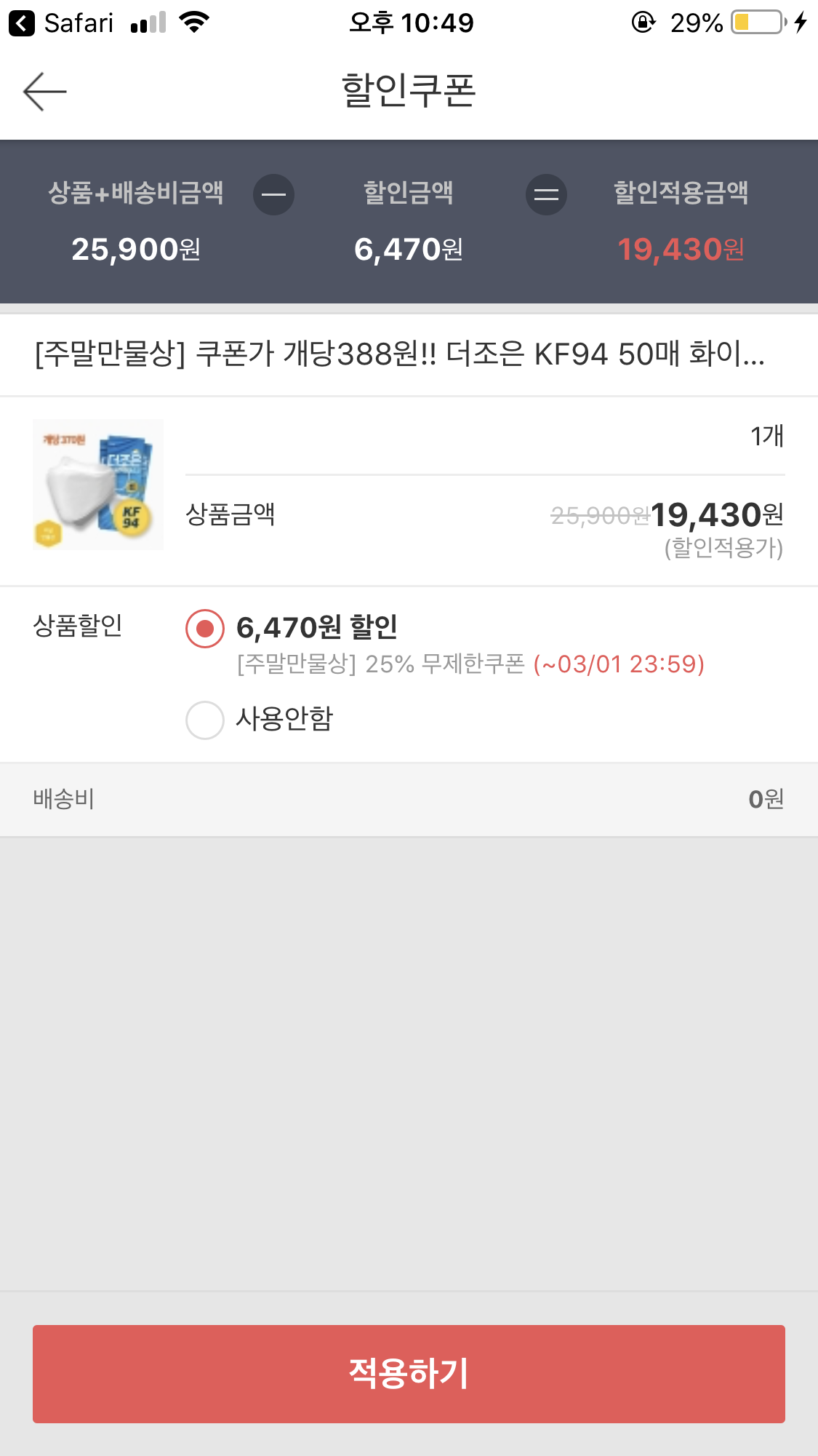 25% 쿠폰 받으면 50매 19,430원으로 내려가요