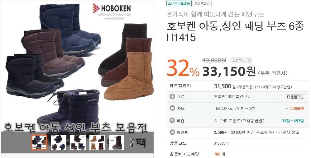[오클락] 아동 성인 패딩부츠 11종 ㄷㄷ;; (33,150/무배) > 국내핫딜