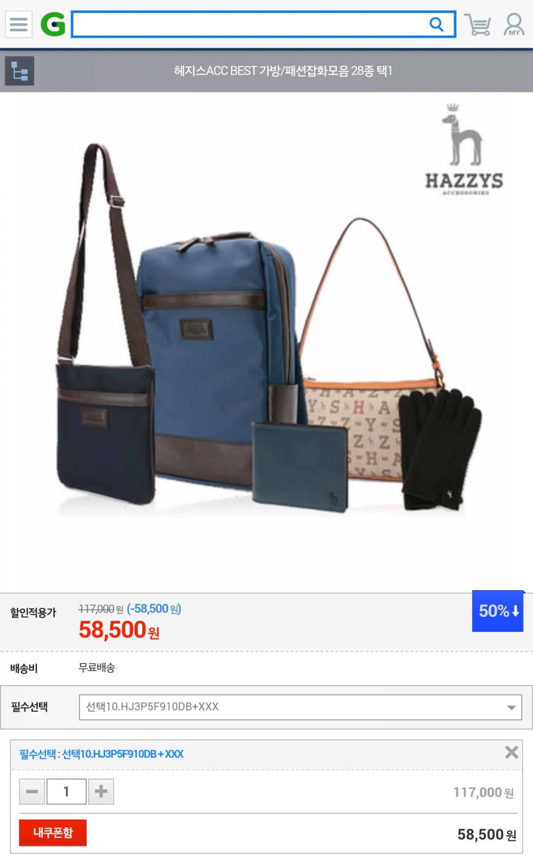 [G마켓] 헤지스 가방/패션잡화모음 28종 택1 (58,500+@/무료배송) > 국내핫딜