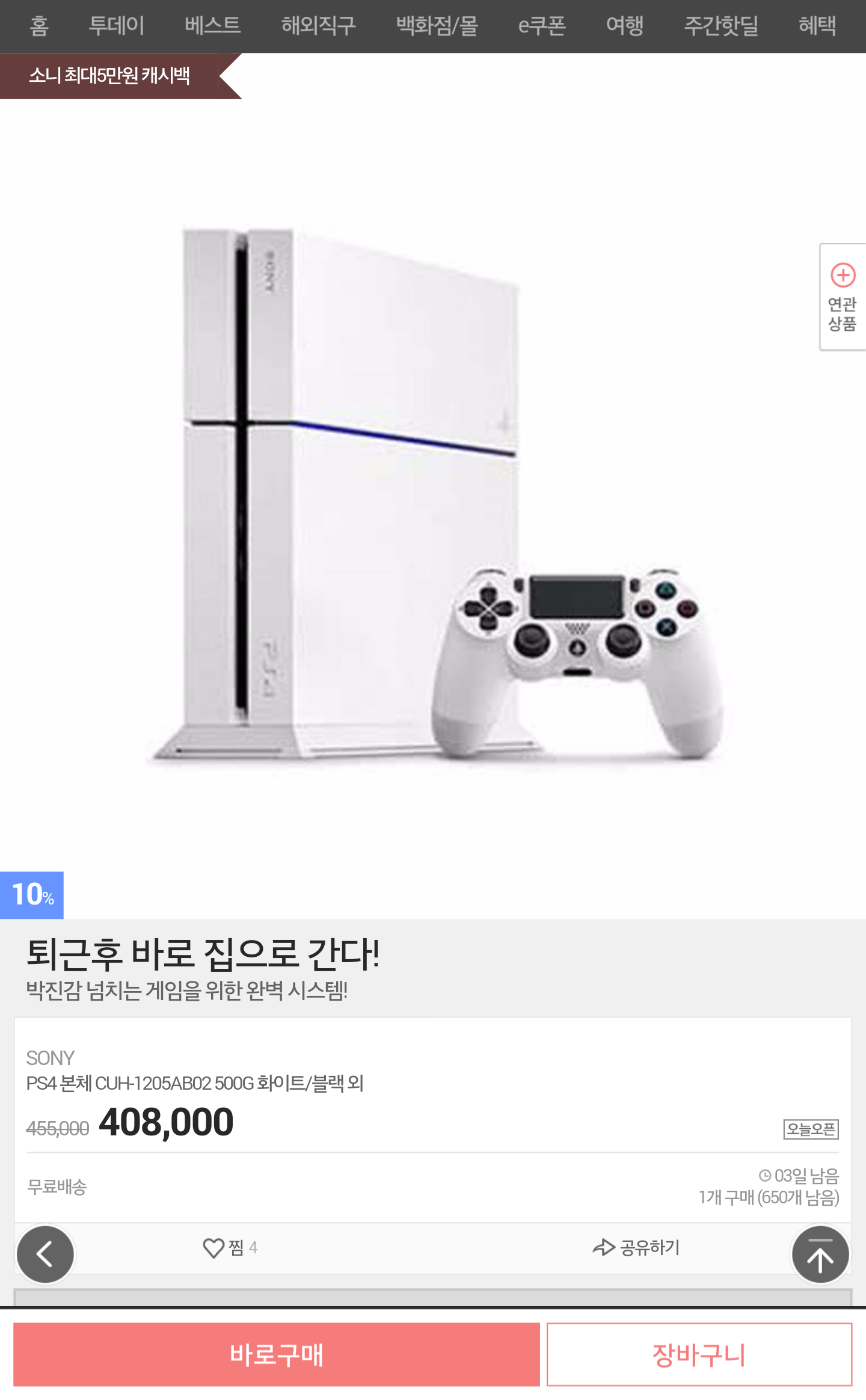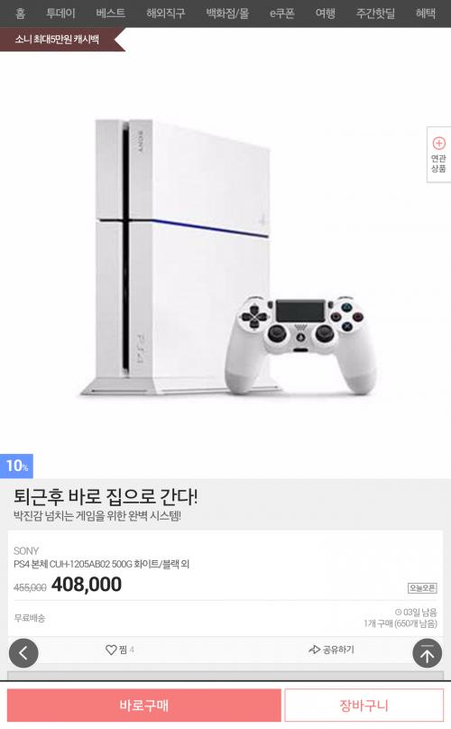 [G9] PS4 CHU+1205AB02 500G(408,000/무료) (2%캐시백) > 국내핫딜