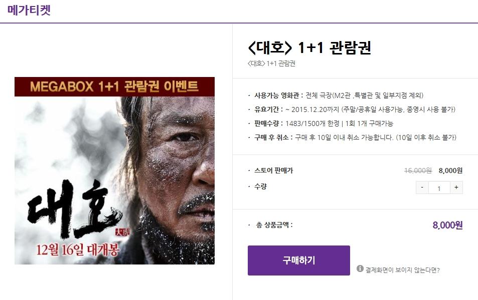 구매 시 해당 영화관에 <대호> 상영시간표를 먼저 확인 후에 구매해주세요.