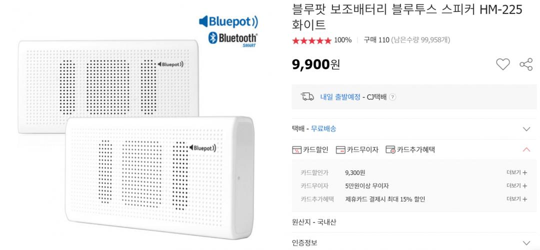 "10,000미리 리튬폴리머 보조배터리 + 스트레오 스피커 겸용" 입니다