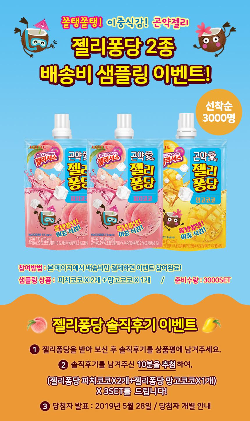 [g마켓] 롯데제과 젤리퐁당 3봉(피치2,망고1) (3,000원/무료)
