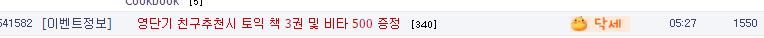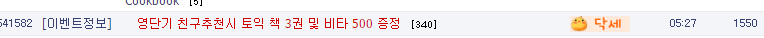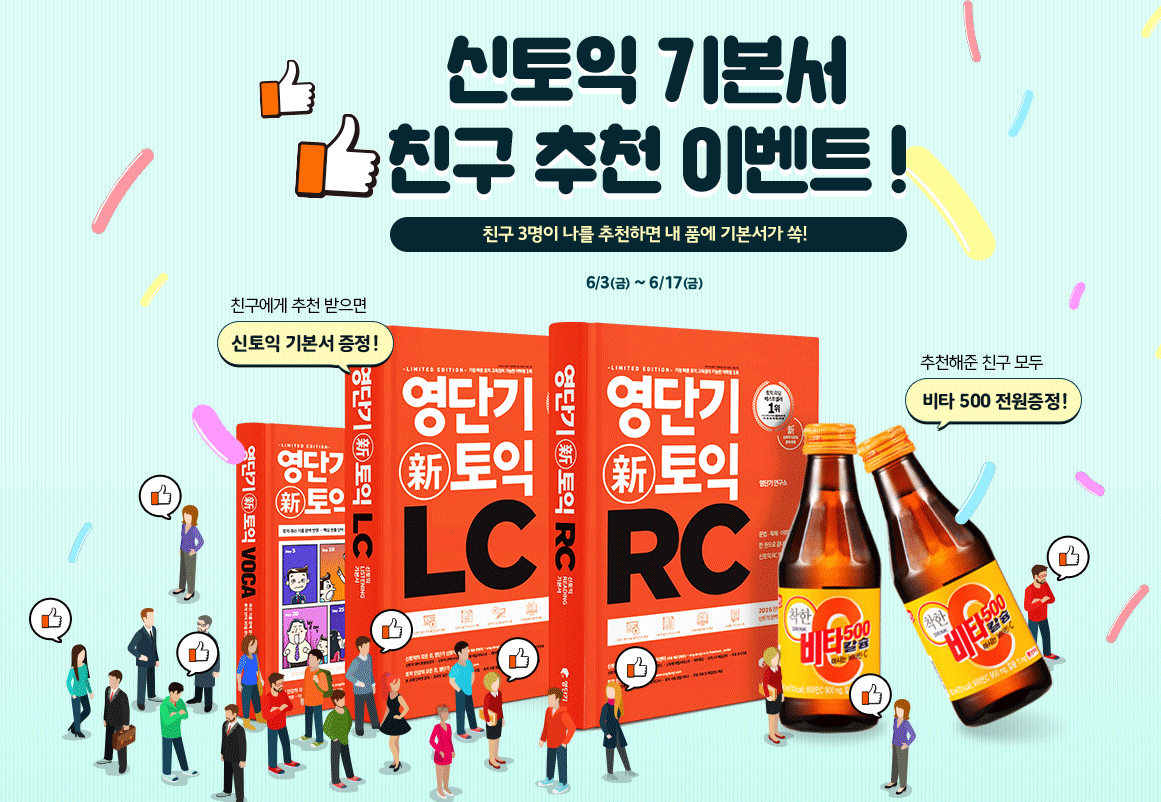 서로 릴레이로 추천하면 토익책 3권과 함께 비타 500 얻을 수 있을 것 같아요.