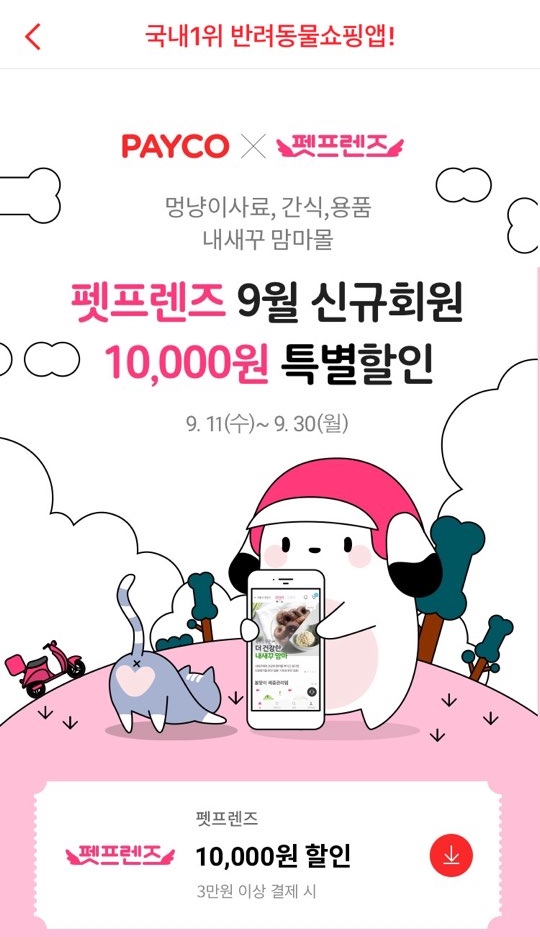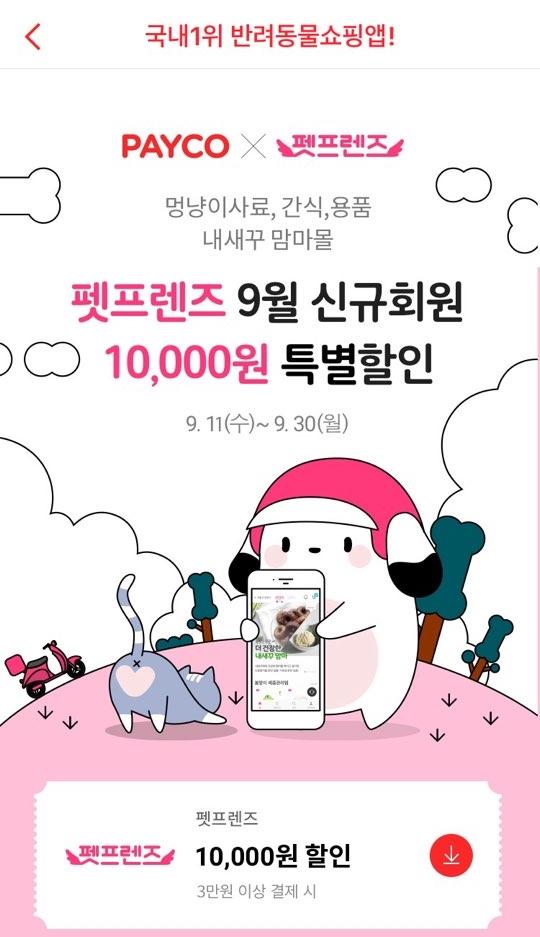 2. 여기서 3만원 이상 구매시 적용할 수 있는 페이코 쿠폰 1만원을 적용시키면