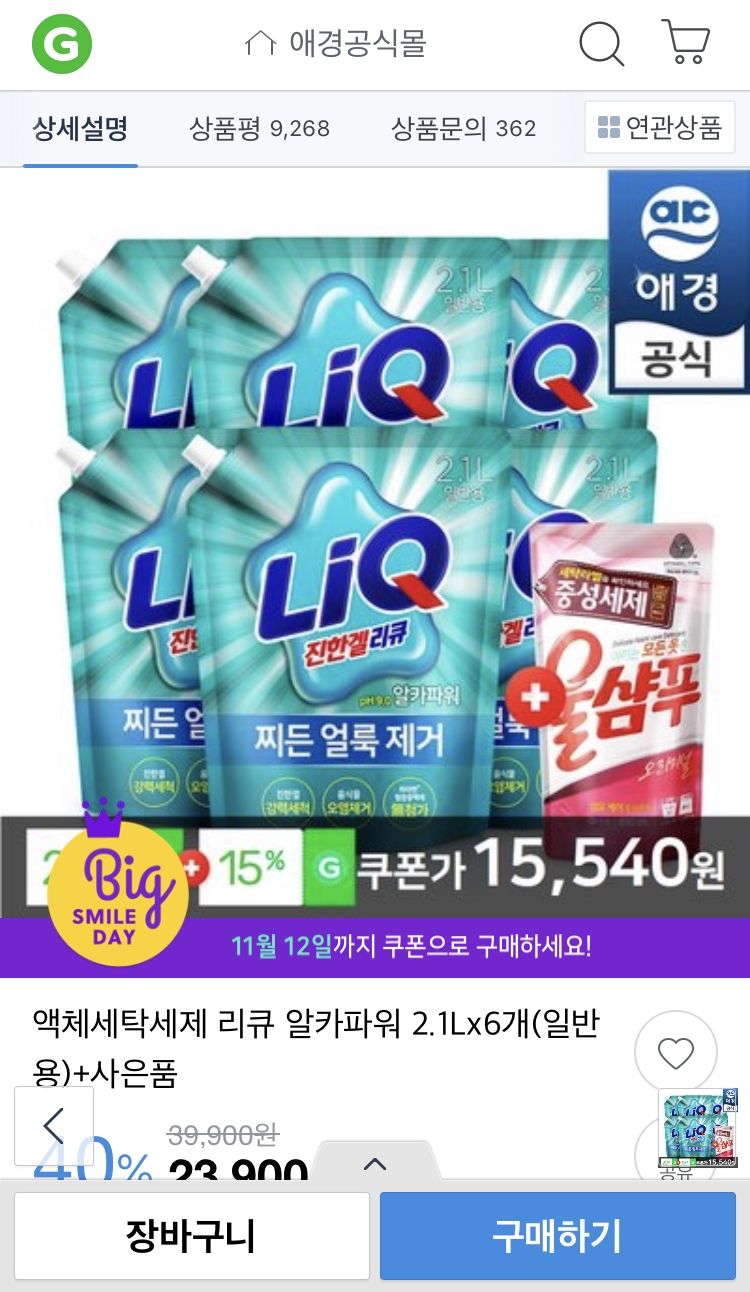 사은품으로 울샴푸 800미리짜리도 껴있고