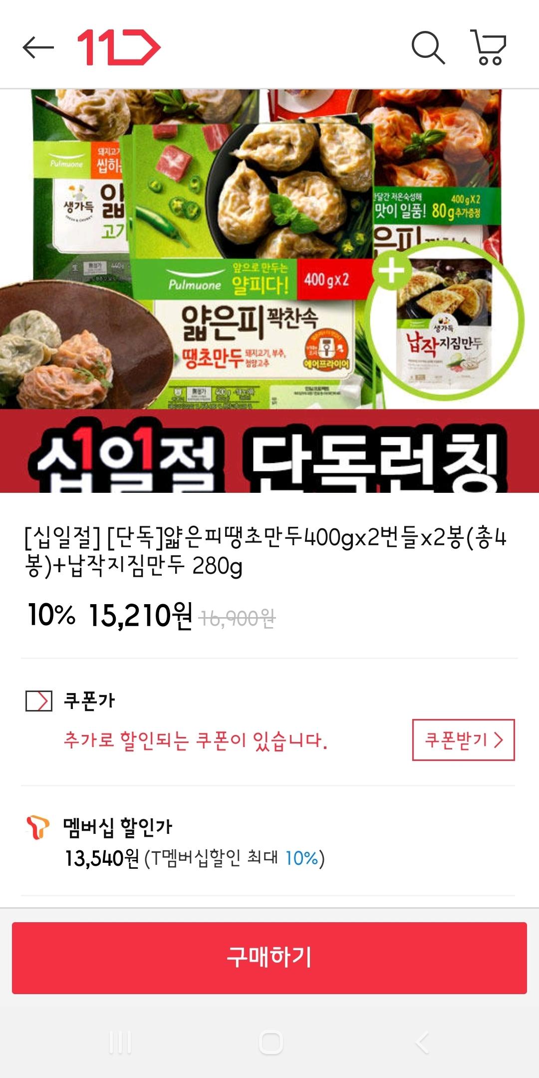 [11번가]얇은피 만두 400g 4봉+ 납작만두(11,910원/무료배송) > 국내핫딜