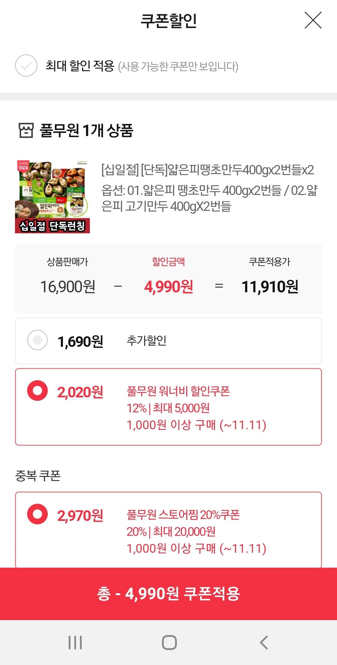 풀무원워너비 12% 쿠폰+풀무원스토어찜 20%쿠폰 적용