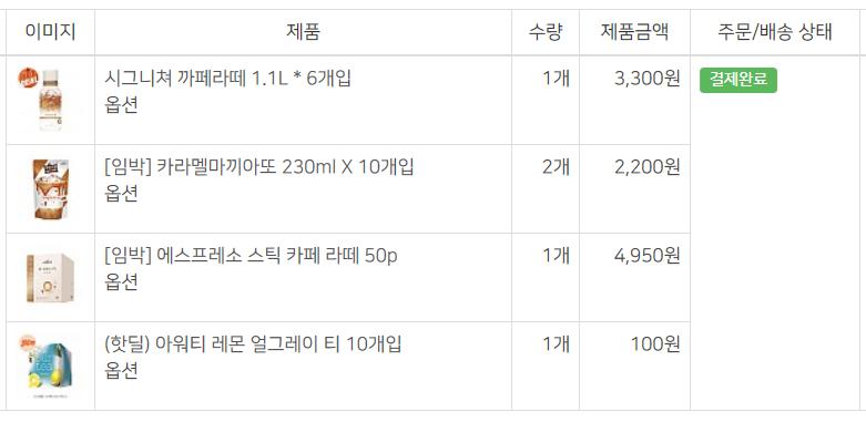 저번달에 시그니처 까페라떼 30팩에 9900원에 사서 마셨는데