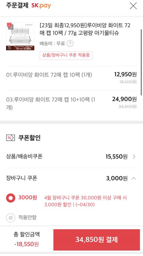 장바구니 쿠폰 받으면 3만원 이상이면 3천원 할인되더라구요 꿀팁공유요