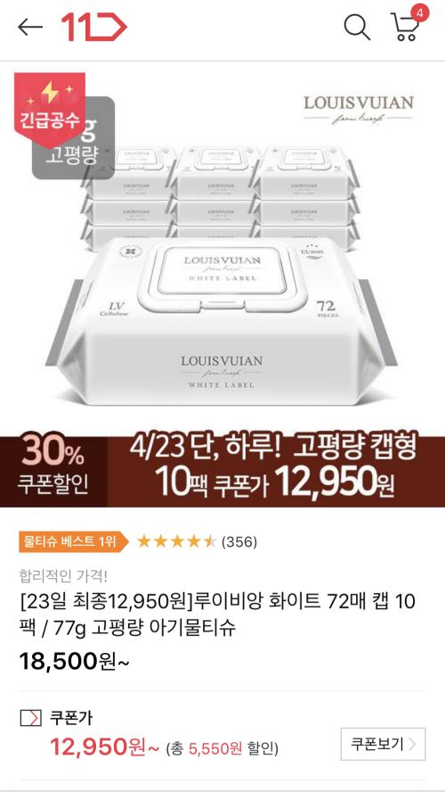 [11번가]루이비앙 화이트 물티슈 10팩 (12950원/무료배송) > 국내핫딜