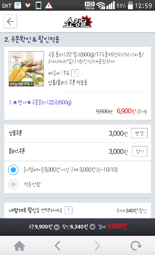 내마음대로 할인 340원 가능하고, 시럽페이 플러스쿠폰 3천원 사용하면 3,560원에 구매 가능해 보입니다.