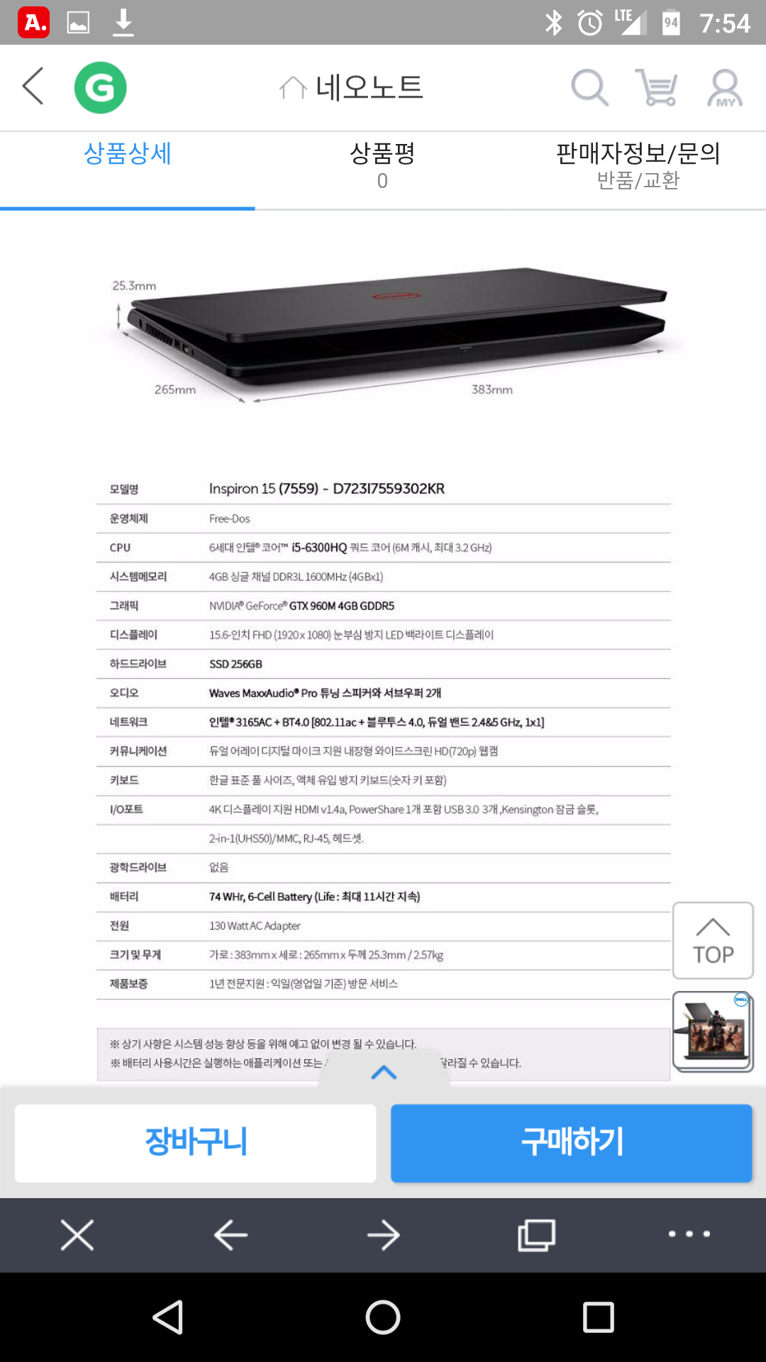 곰세 가격이 올랐네요;; 좀더 일찍 공유를 했어야했는데;; 아쉽습니다만 지금도 가격적인 메리트가 있어서 올려봅니다. 가격 정상가 799000원에 다시 판매중이네요.~# 지마켓은 아직 799000원에 판매중입니다만 저질같이 저마진 컬쳐 막혀 적용못하고;; 지마켓 점점 이상해집니다. ㅋㅋ ssd 256gb를 구매하실 예정이시면 지마켓이 추가요금이 저렴합니다. +50000원 이라 849000원에 구매가능해요. http://mitem.gmarket.co.kr/Item?goodscode=811515270&keyword_seq=9910584644&keyword=dell%2B15%2B7559 제품 설명하면 i5-6300hq gtx960m ddr5 4g m2 ssd 128+ hdd500g 키보드 침수지연 15인치 ips fhd 패널 무게 2.56kg 무게빼곤 빠진게 없습니다. dell에 이정도 가격이면 정말 잘나온 모델이에요.