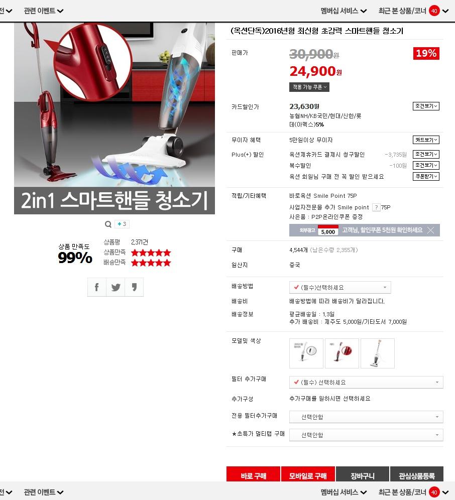 ※ 핸들필요없고, 그냥 600W도 충분하다 하시면 2천원 더싼 모델도 옵션에 있더라구요