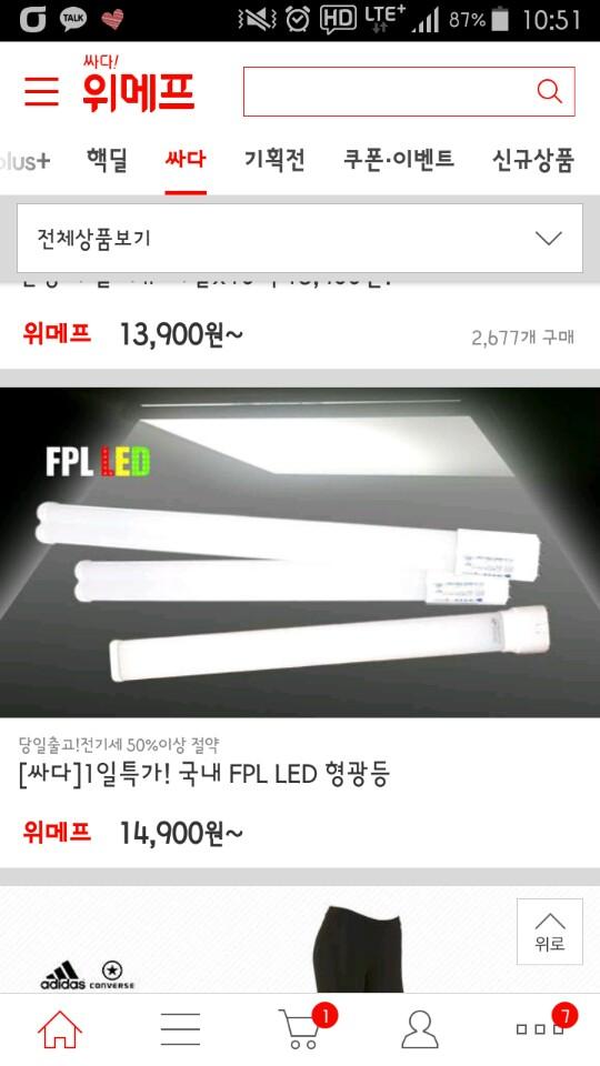LED라는게 정확한 규격이 없어서 잘보고 사셔야되고 싸다고 능사는 아닙니다.오스람fpl형광등 같은경우 광효율이 대충79(와트당 루멘)정도 나오는데 위엣분들이 올려주신 저렴한 led는 85정도 나옵니다. 글쓴이님이 올려주신 제품은 비싸지만 교체가 편리하고 130정도 나오니까 가성비는 몰라도 와트당 효율은 훨씬 높습니다. 제가본 엘지이노텍led사용 모듈 제품은 가격은 몇배 더 비싸지만 광효율이 176이었구요.