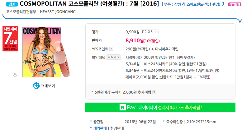 저 잡지는 꽁으로 주는 상품권 쓰면 7910원에 구입 가능합니다.