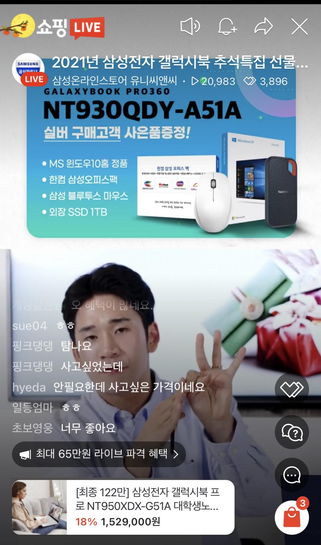 갤럭시북 라방 행사하고 있네요