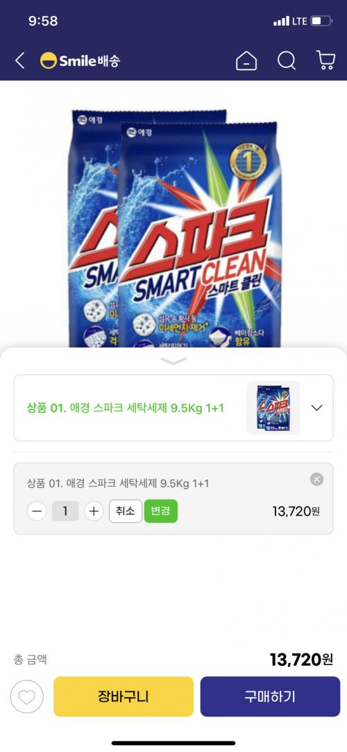 [G마켓] 스파크 세탁세제 9.5kg 1+1 (13,720/무배) > 국내핫딜