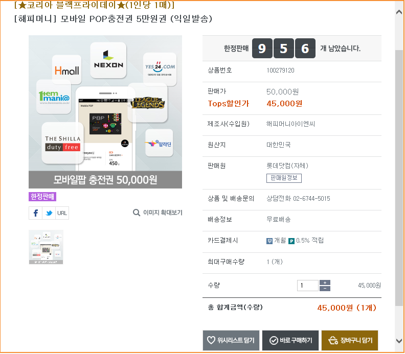홈페이제서도 탑스전용몰->코리안블랙프라이데이->기타에 가면 있습니다.