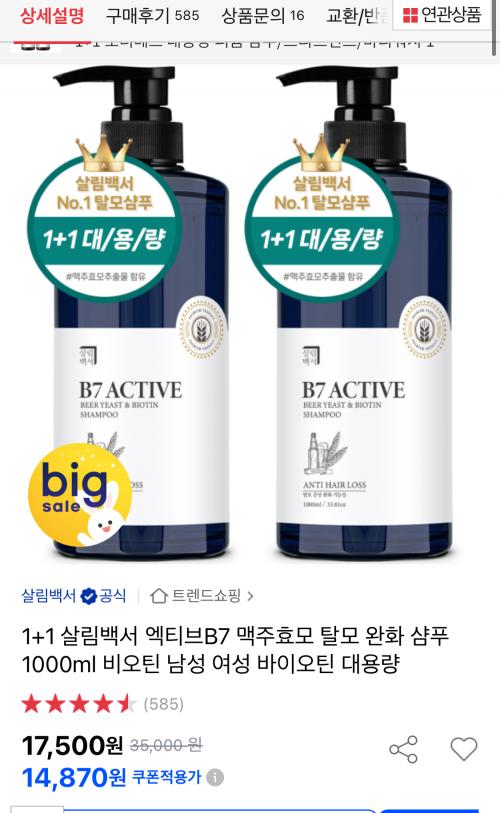 [옥션] 1+1 맥주효모 1,000ml 샴푸 (14,880원/무배) > 국내핫딜