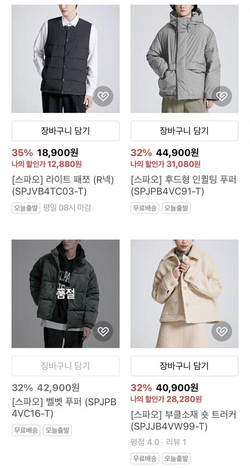 패딩조끼 무난한거랑 자켓 담았는데 무배나오네요