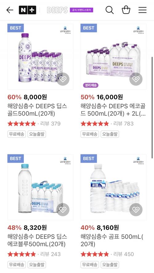 [네이버] 딥스 해양심층수 딥스골드500ml 20병 (8,000원/무배) > 국내핫딜