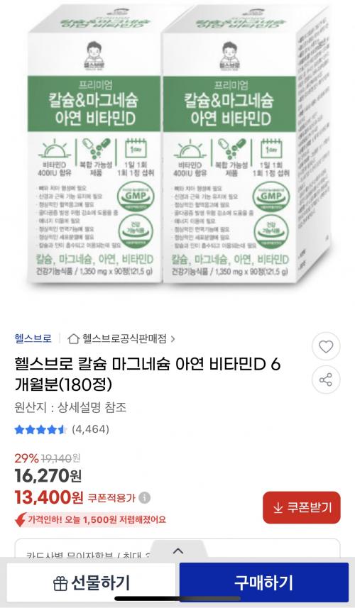 칼슘 마그네슘 오늘 하루만 세일중이네요