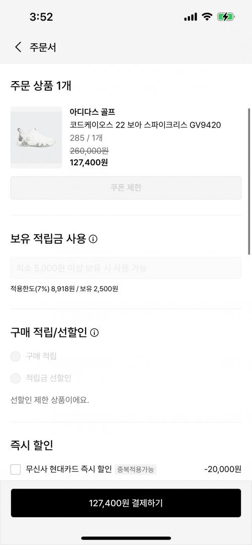 [무신사] 아디다스 골프화 코드케이오스 22 (122,400원/무료) > 국내핫딜