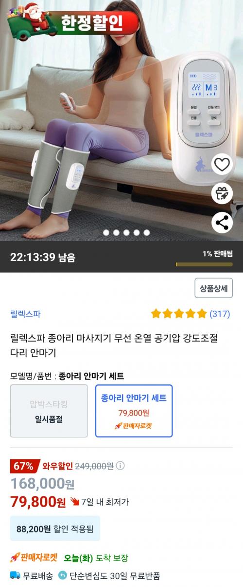[쿠팡] 릴렉스파 무선 온열 공기압 종아리 마사지기 (79,800원/무배) > 국내핫딜