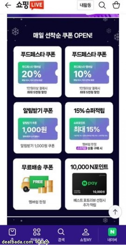 하루에 2번 00시/10시에 선착순 쿠폰 받으시면 되세요