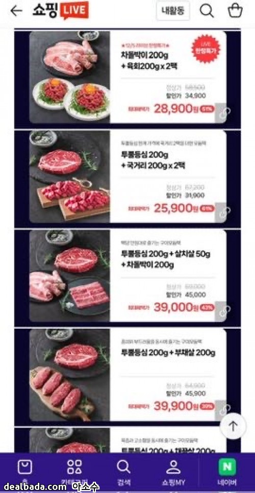 차돌, 육회 세트 11시 라이브 방송에 특가로 28,900원입니다.